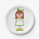 Uma boneca de menina com um vestido verde. Este design parece realmente eficaz nestas placas de papel