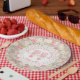 Prato De Papel Placas de papel para madeiras e flores rosadas