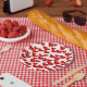Placa de papel de festas mostrada com impressão de corações de namorados festivo. Tamanho 7" Personalize este item ou comprar como está.
