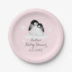 As placas de papel com temas de pinguim bonitos são perfeitas para a sua festa de chá de fraldas. Projetado para combinar a coleção de convites para pinguins, as placas de papel contêm dois pinguins, corações brancos e texto personalizado dispersos em cinzas.