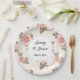 Este prato de papel de casamento personalizado é mostrado em uma adorável impressão rosa rosa rosa rosa. Personalize este item e altere o texto do exemplo para o seu. Também oferecemos um guardanapo de papel equivalente.