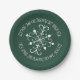 Um esquema de cor verde-escura decora estas placas de papel em flocos de neve. Estas placas de papel são excelentes para o Natal, janto de Natal, festa de Natal, festa de Natal, festa de escritório, festas de férias, casa aberta, troca de biscoitos, escola, igreja, etc... A design é de arte original.