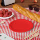 Um mosto na sua próxima festa de tema vermelho, estes pratos são a perfeita sombra de vermelho.
