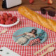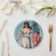 Este é uns trabalhos de arte do vintage que descrevem uma mulher que guardara uma bandeira.