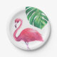 Prato De Papel Placas do Partido Flamingo e Folhas Tropicais