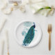 Azul e cerceta brilhantes bonitos nas placas do pavão do vintage a coordenar com os guardanapo do pavão do vintage e os copos de papel do pavão do vintage