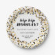 Placas de papel personalizadas para festas de formatura. "Quadril anca hooray!" em uma pia batismal moderna corajosa é seguido em o nome do formando e o ano da classe. O confete do ouro do divertimento é polvilhado em torno da borda da placa! (A nota que o confete metálico do ouro é apenas um efeito impresso - nenhuma folha de ouro real será usada no design!)