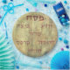 Design celebrando a tradicional placa de peneiração com nomes hebraicos para comidas simbólicas.
