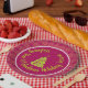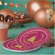 Chapas decorativas de Natal, cor-de-rosa, acentuadas com verde limão. O texto pode ser personalizado para qualquer mensagem ou o texto pode ser removível. O fundo cor-de-rosa pode ser alterado para qualquer cor para complementar o seu estilo decorativo.