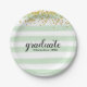 Prato De Papel Placas verdes & Dourados modernas da festa de