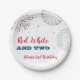 Prato De Papel Placas vermelhas, brancas e de dois aniversários