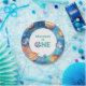 Espaço sideral de aquarela Primeira viagem em torno das placas de papel de primeiro aniversário do Sol com planetas numa galáxia espacial colorida. Texto personalizado.