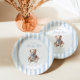 Adicione um toque de charme de vintagem à sua mesa com esta placa de chá de fraldas do milênio. Apresentando listras de aquarela macia, um ursinho clássico, e tipografia elegante, é a mistura perfeita de doce e eterno.