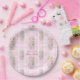 Prato De Papel Podemos esperar um monograma cor-de-xadrez rosa