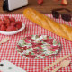 Esta elegante design é perfeita para as férias de Natal com elegantes flores vermelhas de poinsettia e cones de pinho. #natristmas #natristmaspartimento #xmas #festa #partysupply #feriados #festa de feriado #prato de partilos #pratos