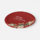 Feliz Natal e nome da família Poinsettias, prato redondo de papel. Texto personalizável no canto superior esquerdo com Poinsettias brancas e vermelhas, bagas e folhagem no canto inferior direito para fazer o texto e o design em texto branco equilibrado em um fundo vermelho. Um design eterno com floral de inverno para a sua época de Natal ou eventos ano após ano. Disponível em tamanhos diferentes e cores de fundo. Misture e combine. Veja nossa coleção de natal com a design de Poinsettia Watercolor para um olhar fácil e coeso para sua casa de Natal, evento de Natal e jantas ou ideias de presentes de eterno.