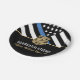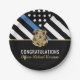 Este design apresenta uma bandeira da polícia com listras pretas e brancas, e uma fina faixa azul de linha também. Um excelente de dizer parabéns ao novo formando da academia de polícia. Personalize com o nome do polícia graduado em ouro. Celebre este marco em estilo!