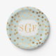 Os pontos modernos e tendenciosos de brilho de ouro falso em um fundo verde azul de menta pálido fazem destas placas de festas de papel a adição perfeita a qualquer celebração.