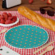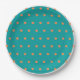 Prato De Papel Pontos de laranja queimada e branco em azul-teal