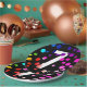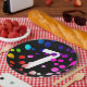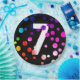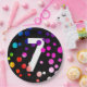 Padrão de ponto do arco-íris neon em fundo preto para festa de aniversário 7. A idade pode ser editada. A cor de fundo preta pode ser alterada.