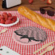 Prato De Papel Pontos e Faixa Rosa Pretos
