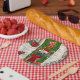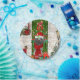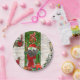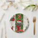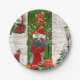 Poodle Dog Natal sentada fora de casa decorada com coroa de Natal, árvore de Natal é uma ideia perfeita de presente de Natal para amantes de cachorros.