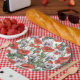 Prato De Papel Pópias Vermelhas e Roxas Padrão
