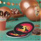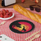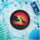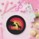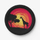 Ilustração do pôr do sol africano com sol vermelho, girafa e decoração da silhueta de árvore em fundo preto. É possível mudar a cor de fundo e adicionar uma diferente à design com sua escolha.