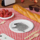 Um desenho a tinta e a lápis de um porco-espinho fofo enfeita estes pratos divertidos! Personalize como desejar, mudando a cor de fundo para se adequar!