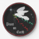 Esta Bela "Uma Bela Espécie" Placa De Papo De Natal Irá Brilhar Sua Mesa De Natal! Ela apresenta uma pomba branca serena voando entre as estrelas Carregando um ramo de oliveira com fitas vermelhas e verdes se espalhando... "Paz na Terra"! Esta é uma Design de Arte Original do Artista Kerry Miller.