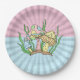 Cogumelos portobello em desenhos animados a mão, cor-de-rosa, amarela, azul e verde.