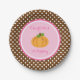 Cura poucas placas de papel da festa de aniversário temático da abóbora. Um design doce perfeito para uma festa de aniversário da queda para sua menina. Cores femininos de alaranjado, de cor-de-rosa e de marrom.