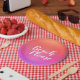 Prato De Papel Praia, por favor, Orange Pink Ombre Beach