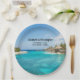 Placas de papel de casamento com uma bela foto com um resort de praia tropical. Bonito água azul e praia branca arenosa com aqueles cabanas que lhe dão uma vibração tranquila na ilha.