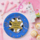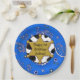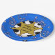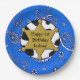 Adicione o nome da criança e o ano de nascimento a estas lindas vacas azuis de bandana e pratos de aniversário de crachá xerife.