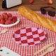 Prato De Papel Preppy Argyle Tartan Diamond Xadrez Vermelho Rosa