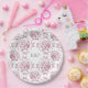 Prato De Papel Preppy Pink Toile Hydrangea Arco com Nome