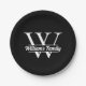Prato De Papel Preto e Branco | Monograma de Nome de Família Simp
