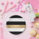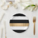 Chapas de papel modernas e elegantes feitas em um padrão listrado preto, branco e dourado. Excelente para qualquer ocasião. Os guardanapos de papel e xícaras estão disponíveis.