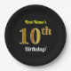Prato De Papel Preto, Faux Dourado 10º Aniversário + Nome Persona