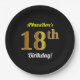 Prato De Papel Preto, Faux Dourado 18º aniversário + Nome Persona