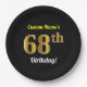 Prato De Papel Preto, Faux Dourado 68º aniversário + Nome persona