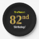 Prato De Papel Preto, Faux Dourado 82º Aniversário + Nome Persona
