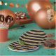 Design estriado, preto, para coordenar com outros elementos da Coleção de Halloween egípcia. Possui um escaravelho verde (besouro) por um pouco de apavoramento do Dia das Bruxas. Celebre o Dia das Bruxas com um partido egípcio este ano! Também excelente quando o seu partido trata precisa de um pouco de drama.