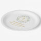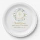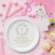 Uma grinalda decorativa de folhas de louro com anéis dourados e uma cruz assenta acima dos detalhes da sua comunhão sagrada especial neste design elegante de prato de papel. Concebido por Thisisnotme©