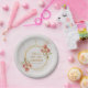 Prato De Papel Primeira Comunhão Rosa Magnólia Mármore Dourado Fl