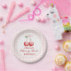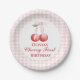 Prato De Papel Primeiro aniversário da Cherry Pink Arco Gingham