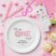 Prato De Papel Primeiro aniversario de MIs Pequeno e Rosa