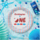 Pescar presentes de primeiro aniversário com peixes vermelhos e azuis e bobeira de pescador