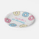 É uma placa de papel redonda de festa de aniversário de Rosquinha "Doce Um". Tem aspersão de cor pastel e rosquinhas bonitinhas e doces. Perfeito para a primeira festa de festa de aniversário das meninas. Ele tem texto de tipografia divertido e todo texto aqui é facilmente personalizável. Melhor ajustado para o primeiro aniversario de crianças com temas de Rosquinha.